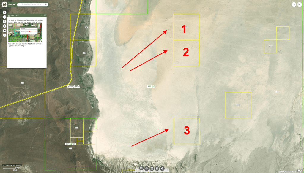 Take a look at the below images. The white areas in the first map are private land, while the yellow is BLM. Notice that the playa only has around 4 private 160 acre parcels. I am selling the 3 that I own… this constitutes 75% of the large private inholdings on the playa.